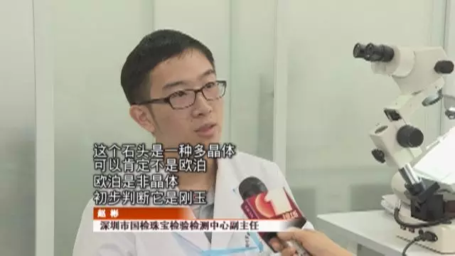 隨后工作人員對(duì)石頭的密度進(jìn)行測(cè)試,并確定不是先前拍賣(mài)公司說(shuō)的“歐泊石”,而是剛玉。