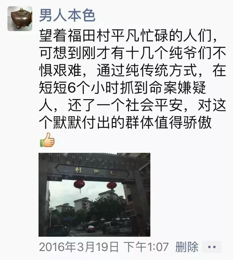 ▲華強(qiáng)北派出所民警馮長涌朋友圈