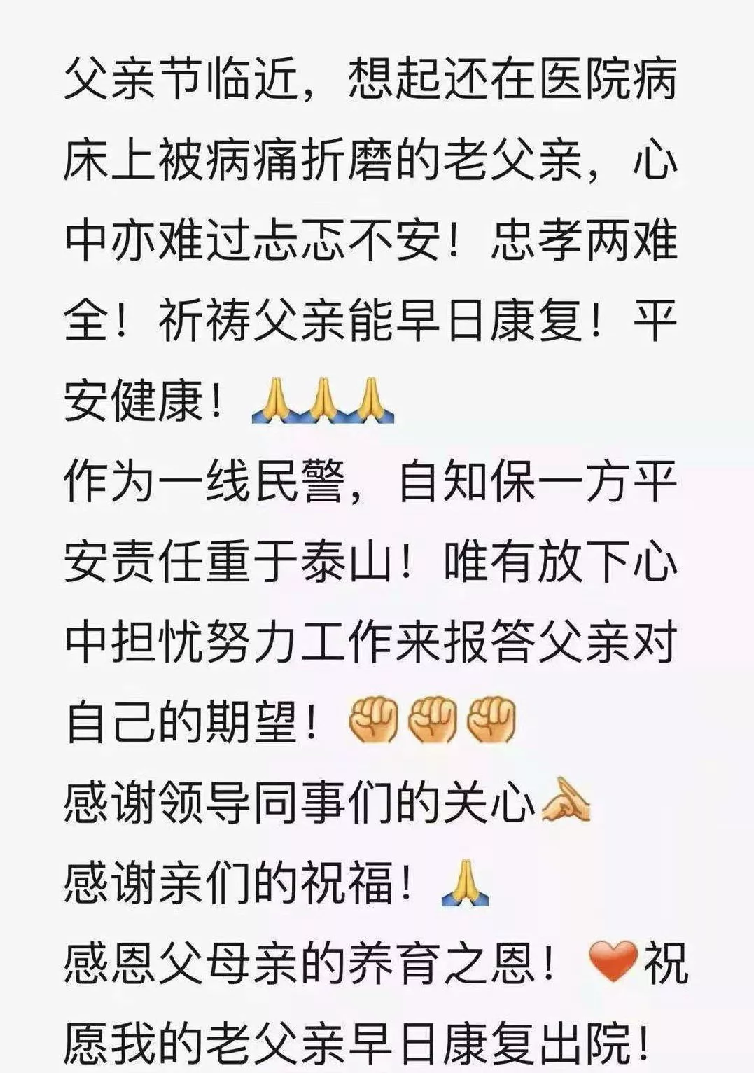 ▲機(jī)訓(xùn)三中隊(duì)輔警陳宇文朋友圈