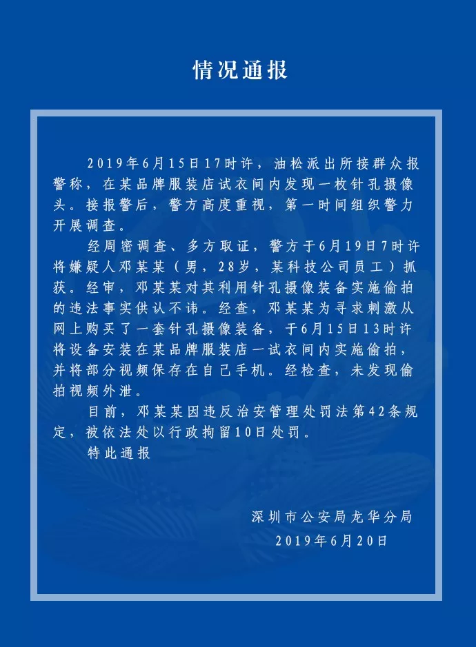 相關(guān)報(bào)道:最新!深圳優(yōu)衣庫(kù)“偷拍門(mén)”:人抓到了!