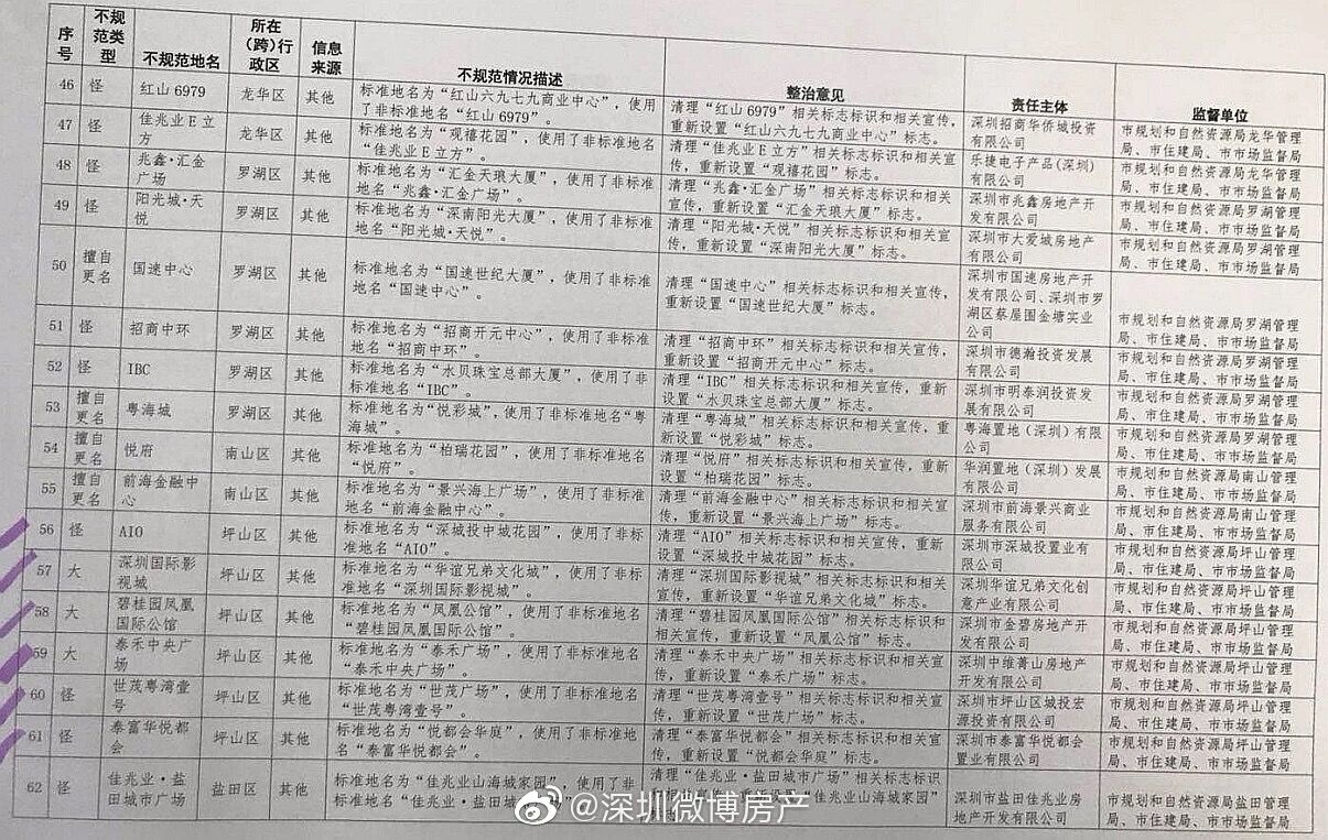 據(jù)了解,首批名單中,寶安是重災(zāi)區(qū),共有24個(gè)在列;光明7個(gè)、龍崗坪山羅湖均為6個(gè)、龍華5個(gè)、福田4個(gè)、南山2個(gè)、鹽田和大鵬均為1個(gè)。