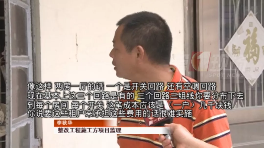 施工方表示,政府出資整修的是公共區(qū)域,他們在施工過程中發(fā)現(xiàn)很多房子存在電線老舊、沒有地線等隱患,但是房東不愿意出錢整改,唯有暫時以空氣開關(guān)代替漏電開關(guān)。