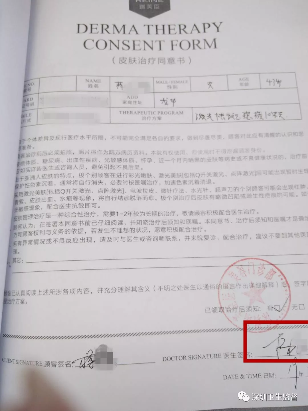 皮膚治療同意書(shū)和治療記錄表