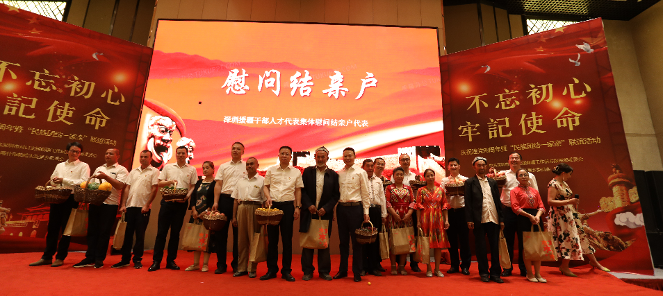 “歷史告訴我們,沒有共產(chǎn)黨,就沒有新中國;沒有共產(chǎn)黨,也沒有我們新疆各族人民今天的幸福生活,在這個特殊的日子里,讓我們繼續(xù)攜起手來,不忘初心,牢記使命,緊密團結(jié)在以習(xí)近平同志為核心的黨中央周圍,聽黨話,跟黨走,挑起重擔(dān),勇當(dāng)尖兵,共同為實現(xiàn)新疆社會穩(wěn)定和長治久安總目標(biāo),為受援地打贏脫貧攻堅戰(zhàn)而努力奮斗!”深圳援疆前方指揮部總指揮楊春生在致辭中說到。
