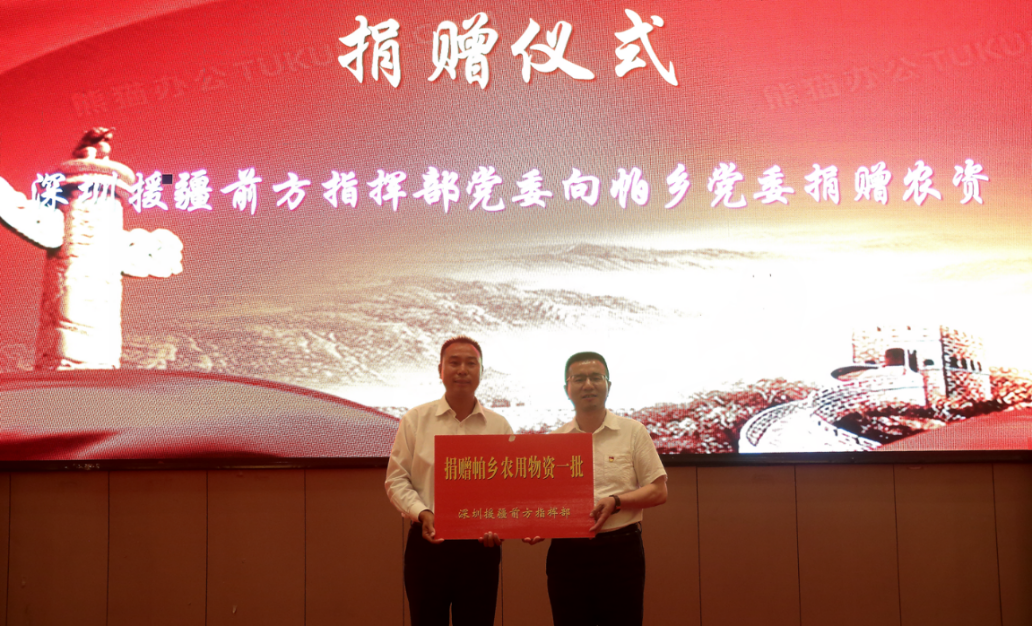 深圳援疆前方指揮部副總指揮洪雋代表深圳援疆前方指揮部向帕鄉(xiāng)黨委捐贈農(nóng)用物資