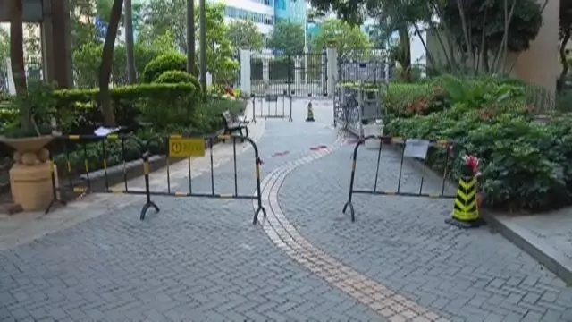 事發(fā)后,在一旁的樓層,一戶高層也在進行維修窗戶。物業(yè)管理處立即在一樓對應的區(qū)域加裝了警戒圍擋,防止高空墜物。