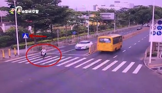 一男子騎車(chē)橫穿馬路被撞飛,而斑馬線(xiàn)就在不遠(yuǎn)處