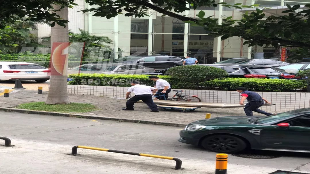 記者在現(xiàn)場看到,事發(fā)現(xiàn)場已經被清理完畢,物業(yè)的工作人員正在設置安全警戒線,提醒行人注意避讓。