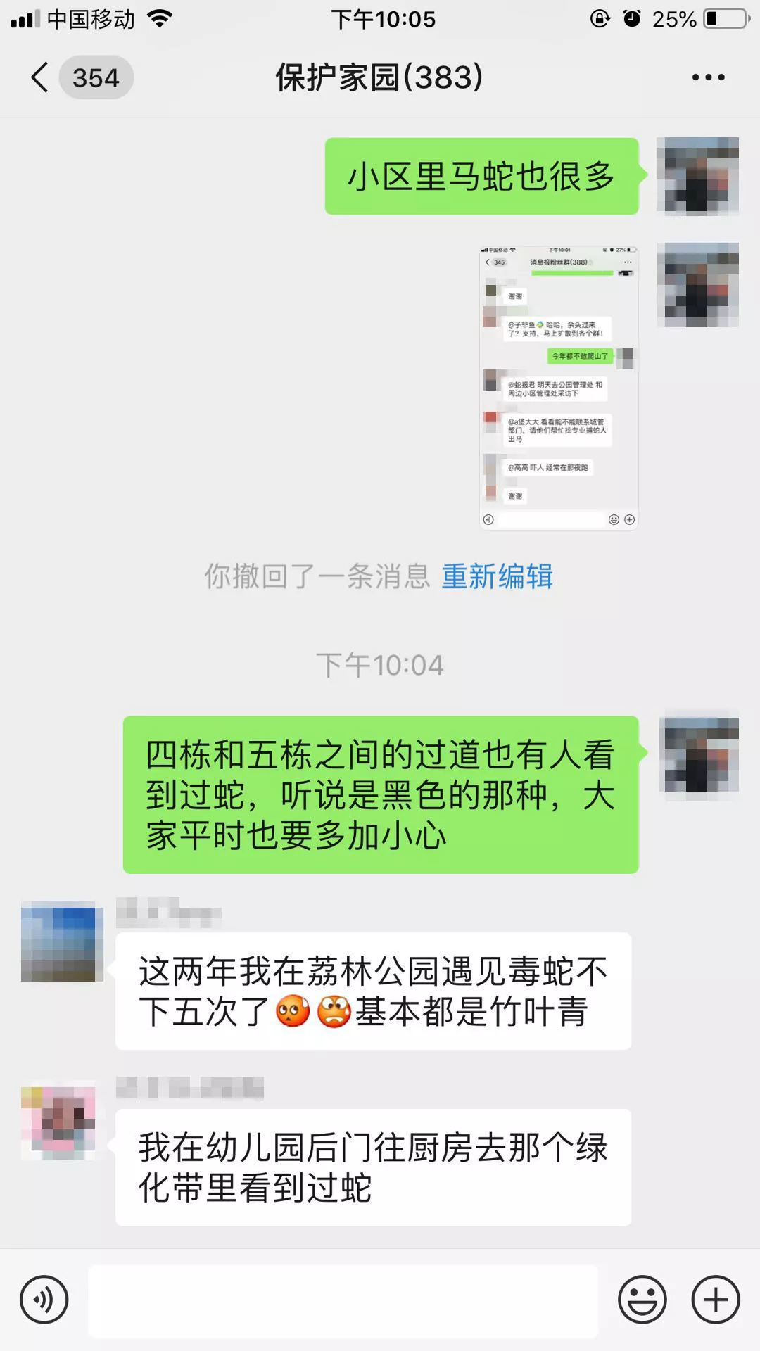 荔林公園蛇出沒的消息,在蛇口消息報微信粉絲群里炸開了鍋,有網(wǎng)友表示,此現(xiàn)象甚是危險,希望能加強管理。