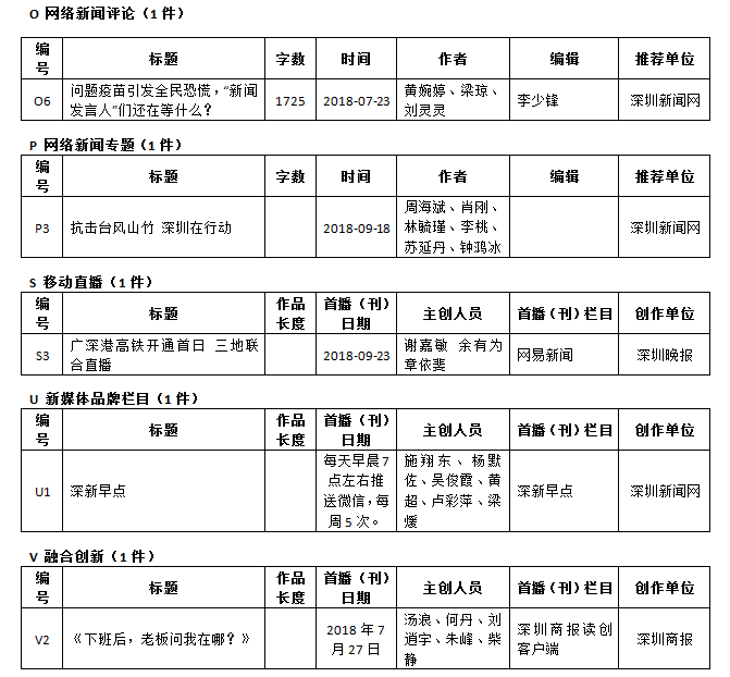 第26屆(2018年度)深圳新聞獎(jiǎng)獲獎(jiǎng)作品目錄