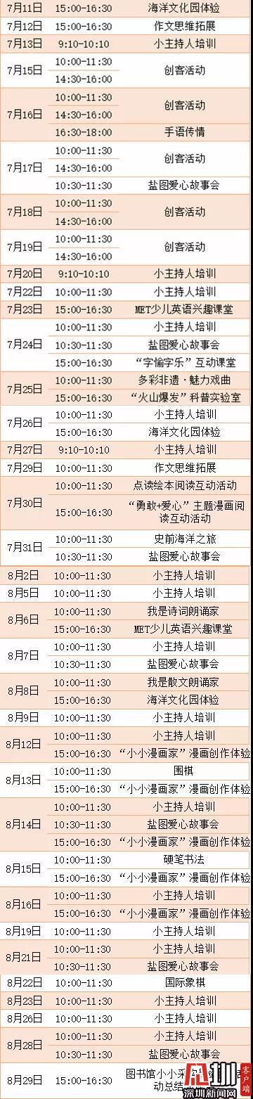 同時(shí),7月13日—8月30日期間,區(qū)圖書館少兒館及沙頭角分館少兒服務(wù)區(qū)還適時(shí)延長(zhǎng)了暑期服務(wù)時(shí)間,開放時(shí)間為每周一到周五的10:00—18:00,周末的09:00—18:00。來來來,鹽田的孩子們,玩樂之余也別忘記學(xué)習(xí)哦,到圖書館來趟書香之旅吧。