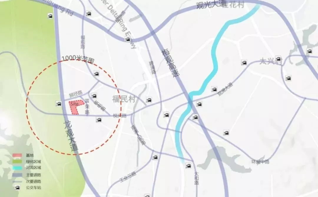 ▲項目西臨龍觀大道,南接悅興路,北接獅徑路,東接富榮路,交通便利。