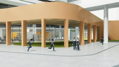 規(guī)劃采用了S型的布局關(guān)系,初中部和小學部各置一側(cè),各自有相對獨立的院落空間的同時,能夠照顧到空間的流通性,使得二者能夠方便地共享公共教學設(shè)施。