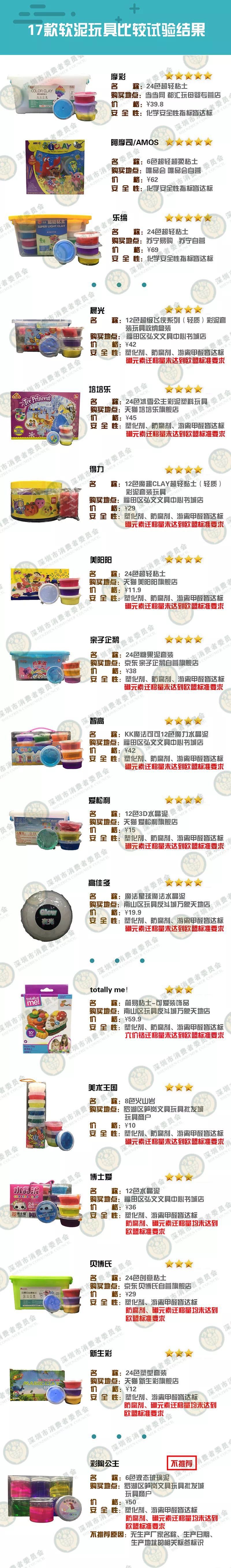 深圳特區(qū)報2019年7月19日訊 軟泥玩具作為寓教于樂的新產(chǎn)物,且與孩子皮膚高頻且長時間接觸,消費者更加注重其質(zhì)量安全,然而市場上品牌眾多,魚龍混雜,消費者選購時很難甄別優(yōu)劣。為了更好地指引消費,為孩子們選出安全可靠的軟泥玩具,深圳市消費者委員會聯(lián)合區(qū)消委會委托深圳市品質(zhì)消費研究院開展軟泥玩具的比較試驗,17款樣品中,3款獲評五星,1款不推薦使用。