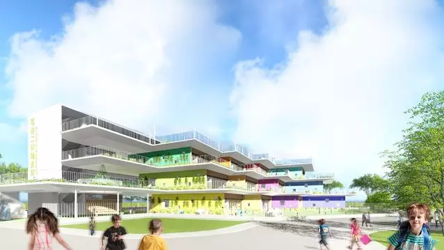 深圳市蓮花二村幼兒園重建校舍在緊張的用地中,首先退讓出一個完整的室外活動場地。通過立體剪裁出層層退臺的多元化的活動空間。南側(cè)向陽,北側(cè)遮雨,陰晴雨雪皆有孩子們的游樂天地。