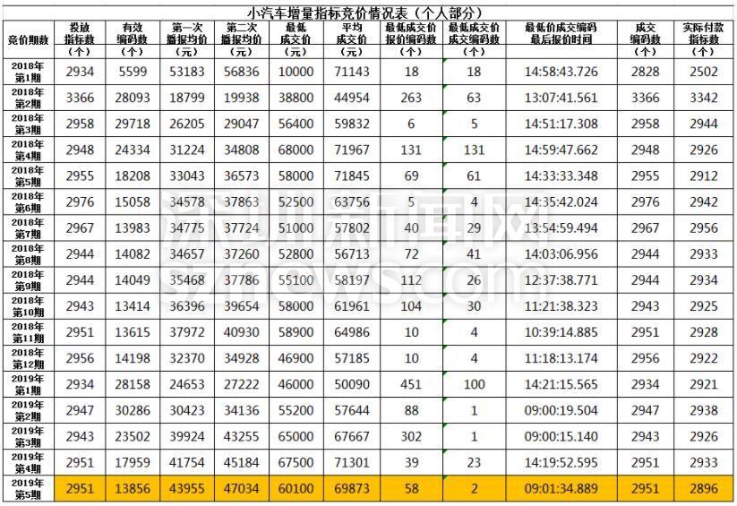 深圳市小汽車增量指標(biāo)競(jìng)價(jià)情況表(2018年第一期——2019年第五期)