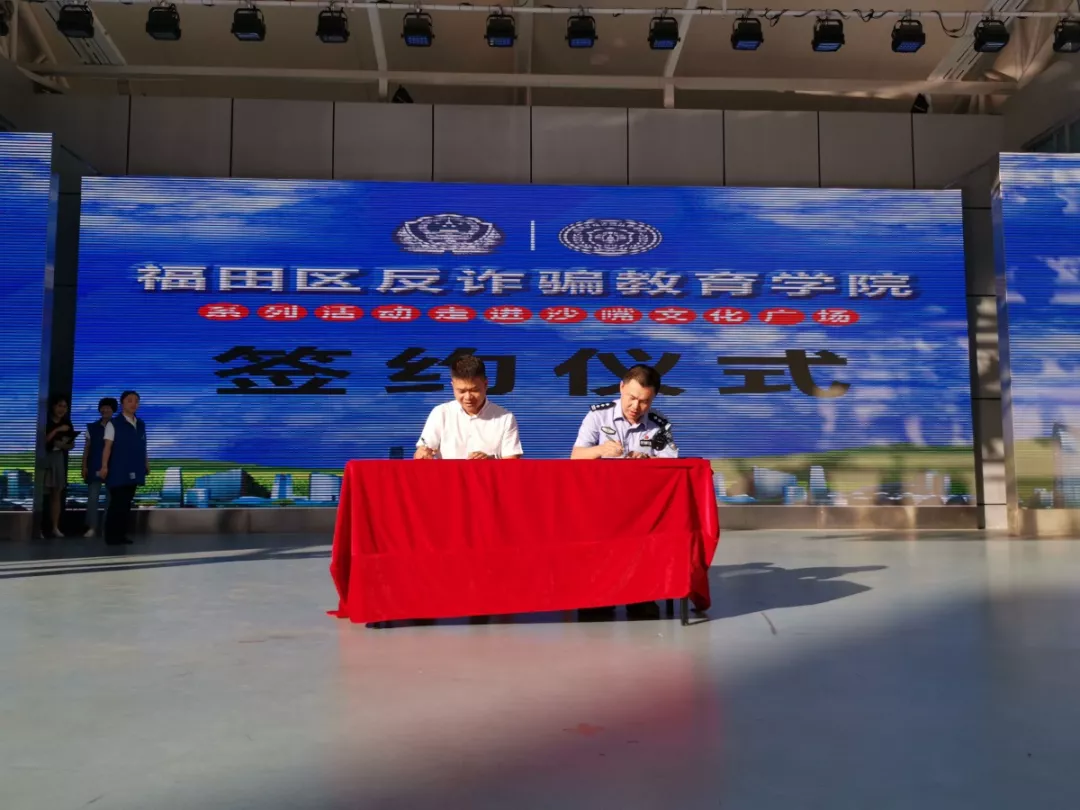 活動(dòng)現(xiàn)場(chǎng),肖劍平所長(zhǎng)與沙頭街道辦黨工委副書(shū)記熊新清及沙嘴實(shí)業(yè)股份有限公司簽署了《福田反詐騙教育專(zhuān)刊》戰(zhàn)略合作協(xié)議。