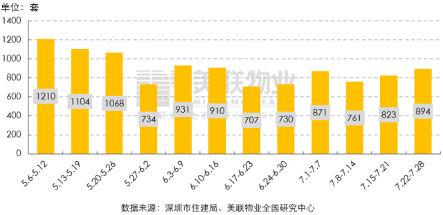 7月22日—7月28日一周內(nèi),全市共簽約成交一手住宅894套/8.5萬㎡,環(huán)比分別增長8.6%和8.0%。從周成交套數(shù)來看,連續(xù)兩周環(huán)比增長,達到6周以來的最高值。