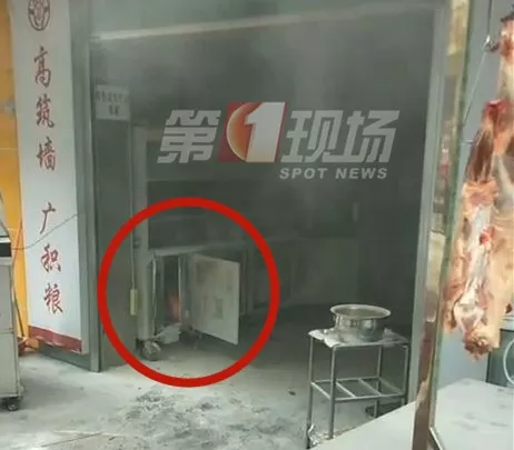 在龍崗區(qū)長吉路一家燒烤店,幾名店員把串好的羊肉串?dāng)[上燒烤爐,剛一打開機器就起火了,現(xiàn)場濃煙沖起10多米高。
