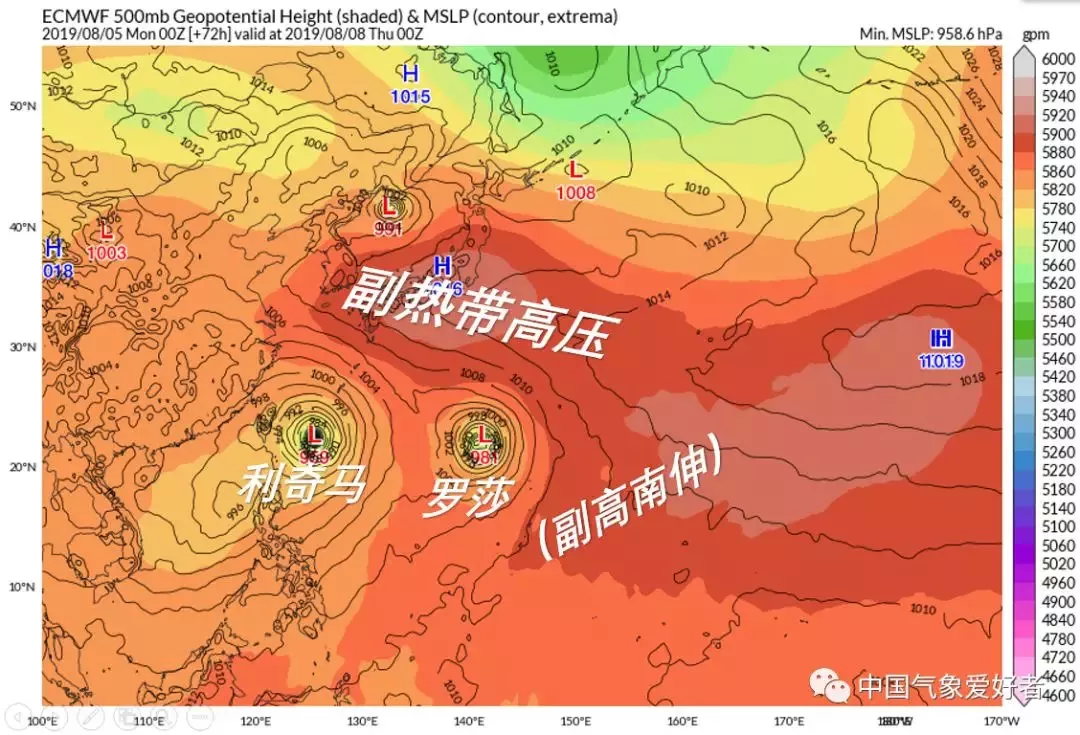 羅莎臺風(fēng)將會是一個又大又強的臺風(fēng)。由于個頭太大,副高壓不住,所以它不會來我國,最大可能是緩慢北上登陸日本。不過,羅莎將會阻止副高在利奇馬南側(cè)西伸,并且對利奇馬有互斥作用,是利奇馬臺風(fēng)的“導(dǎo)演”之一??傮w看來,羅莎將會對利奇馬施加向西的作用力,促使利奇馬更靠近我國。