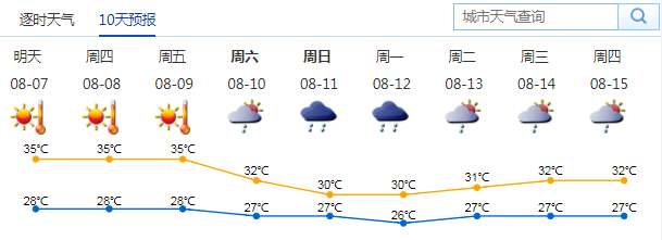 我市以晴天為主,大部分地區(qū)最高氣溫34-36℃,
