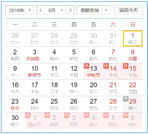 特報(bào)君同時(shí)奉上2019下半年節(jié)假日安排