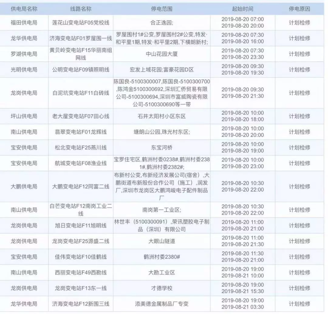 據(jù)中國南方電網(wǎng)信息,接下來這幾天深圳這些地方計劃停電,快看看有沒有你們家。