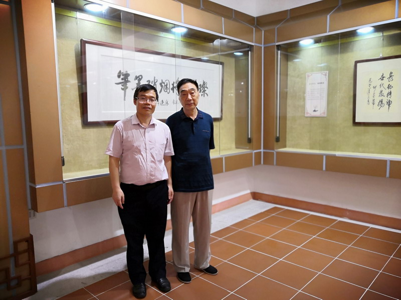▲ 深圳報(bào)業(yè)集團(tuán)駐穗記者劉良龍和軍旅作家吳東峰(右)在開國(guó)將軍手跡展現(xiàn)場(chǎng)。