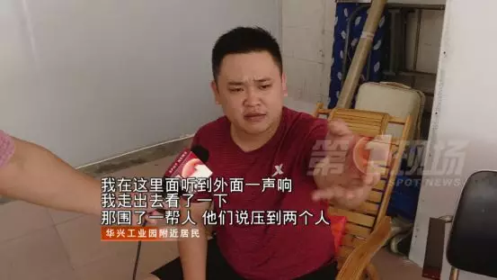 在華興工業(yè)園門口,記者看到一根2立方米左右的水泥柱子和車輛出入口的欄桿都倒伏在地面上。而在水泥柱子底下,以及旁邊的路面上,斑駁的血跡清晰可見(jiàn)。