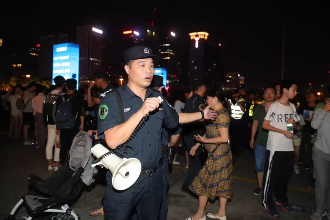 “注意安全,不要擁擠,照顧好老人和小孩。”某廣場擁擠的人群中,福田公安分局機動訓練大隊副大隊長黃裕青拿著大喇叭喊道。他的臉熱得通紅,汗珠大顆大顆地往下掉,但卻始終沒停下巡邏的腳步。嗓子沙啞了,他便喝口水潤潤,繼續(xù)在人群中穿梭,在維護秩序的同時,為有需要的人提供幫助。