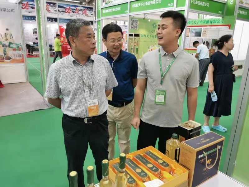 展銷會期間,市委常委、政法委書記陳榮高,市農(nóng)業(yè)農(nóng)村局黨組成員、副局長呂文生一行特意走訪了參加本次展會的多家企業(yè)。在江西油脂有限公司的展區(qū),陳書記詳細(xì)了銷售人員紅花山茶油銷售情況,當(dāng)?shù)弥u出不少時滿意得點(diǎn)頭稱贊,并勉勵銷售人員要以此為契機(jī),讓更多的上饒優(yōu)質(zhì)農(nóng)產(chǎn)品走進(jìn)粵港澳大灣區(qū),走向全世界。