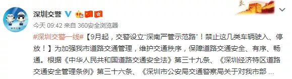 9月起,交警設(shè)立“深南嚴(yán)管示范路”!禁止這幾類車(chē)輛駛?cè)?、停放?/p>