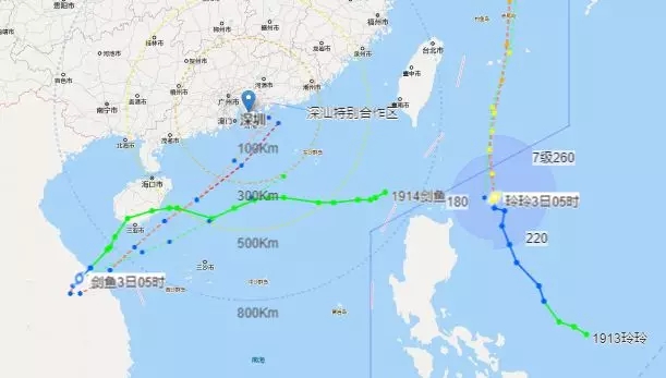 見圳客戶端.深圳新聞網(wǎng)2019年9月3日訊 9月2日,今年第13號臺風(fēng)“玲玲”(強(qiáng)熱帶風(fēng)暴級)生成,將向臺灣以東洋面靠近。今日2時(shí),記者從深圳市氣象臺獲悉,另一個南海低壓也已加強(qiáng)為今年第14號臺風(fēng)“劍魚”(熱帶風(fēng)暴級),5時(shí)其中心位于深圳市西南方大約1000公里,中心附近最大風(fēng)力8級(64公里/小時(shí)),中心最低氣壓995百帕。今明兩天其將在越南中部沿海一帶徘徊打轉(zhuǎn),之后可能轉(zhuǎn)向東北方向移動并靠近廣東沿海。