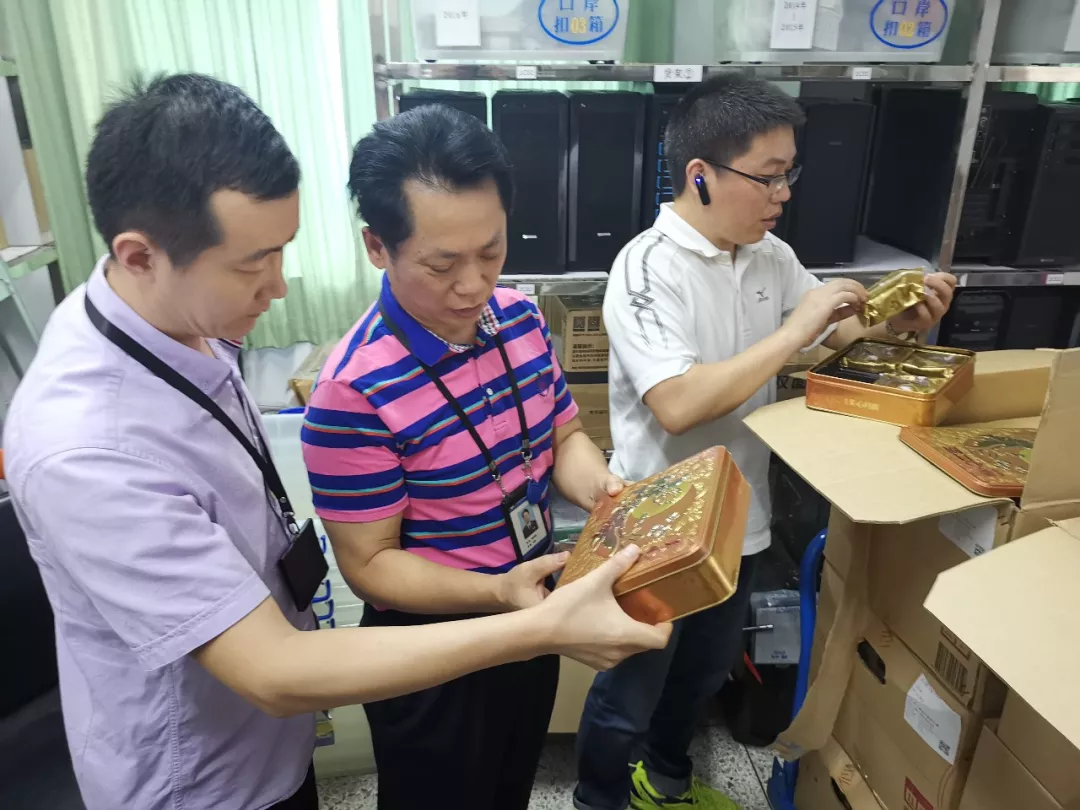 9月3日,深圳市市場監(jiān)督管理局羅湖監(jiān)管局接到線索:一消費者通過微信渠道購買一批香港知名品牌月餅,收貨后懷疑為假冒商標食品并向口岸派出所報案。當天上午,羅湖監(jiān)管局執(zhí)法人員與羅湖公安分局口岸派出所民警迅速組成聯(lián)合執(zhí)法組展開行動,查獲涉嫌假冒香港知名品牌的月餅300盒,經(jīng)商標權(quán)利人現(xiàn)場鑒定,初步認定其中260盒為侵犯商標權(quán)食品,40盒為香港生產(chǎn)的無中文標簽食品。