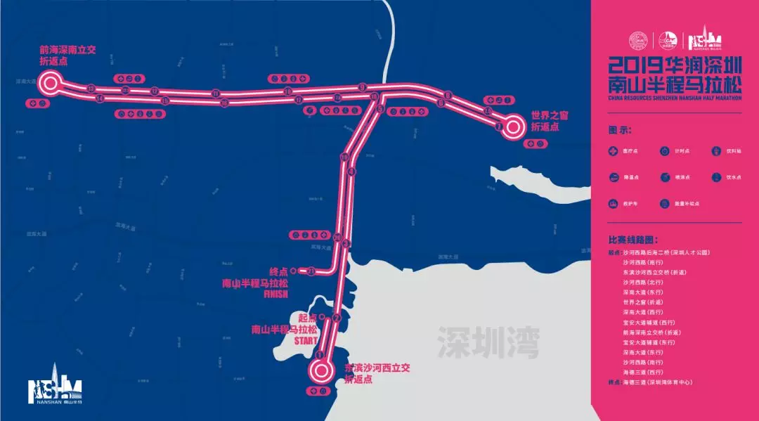 值得一提的是,今年南馬的路線較去年略有調(diào)整,賽事線路整體呈T字形,賽道起點(diǎn)在沙河西路后海二橋(深圳人才公園東門(mén)),賽道終點(diǎn)在海德三道(深圳灣體育中心),賽道主體由沙河西路和深南大道組成一縱一橫,途徑深圳灣總部經(jīng)濟(jì)片區(qū)、高新技術(shù)園、大沙河生態(tài)長(zhǎng)廊、世界之窗、南頭古城等多個(gè)地標(biāo)性建筑,不僅彌補(bǔ)了往年沒(méi)有經(jīng)過(guò)深圳灣海域的遺憾,讓選手在賽跑之余一覽灣區(qū)海景,更向選手與觀眾充分展示南山自然人文科技之美。