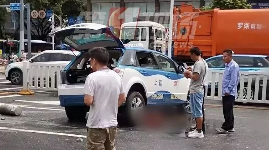 一輛出租車突然失控撞上安全島