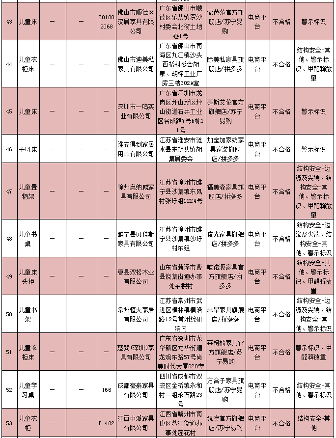 深圳4批兒童家具產(chǎn)品上黑榜 涉及宜捷家居等3家企業(yè)!