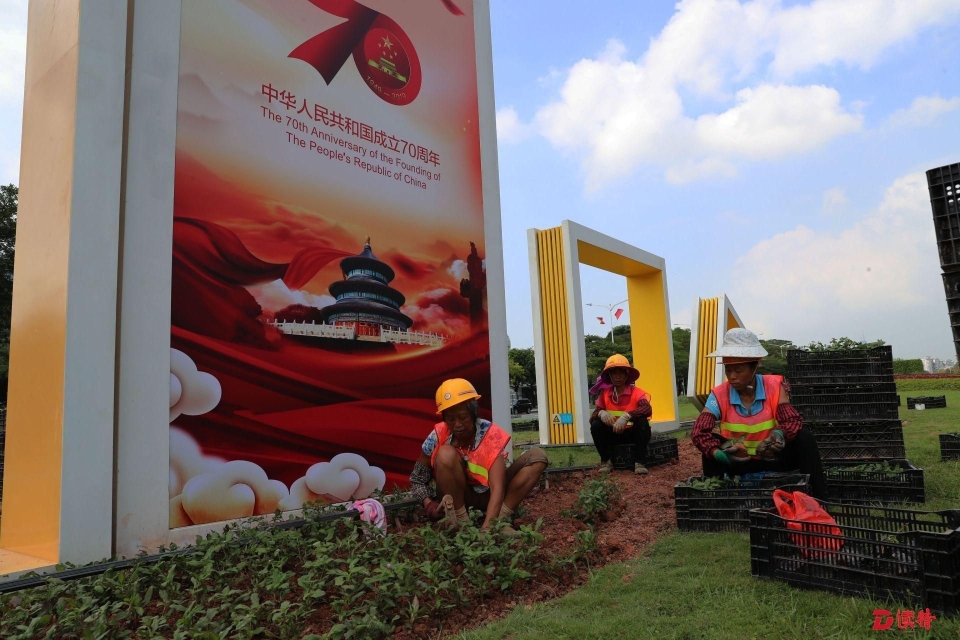 鄧小平畫(huà)像廣場(chǎng)上,設(shè)計(jì)了“祥云”構(gòu)圖,進(jìn)行新的花卉布置,在慶祝新中國(guó)成立70周年這個(gè)特別的日子,表達(dá)出對(duì)深圳美好未來(lái)的期許。