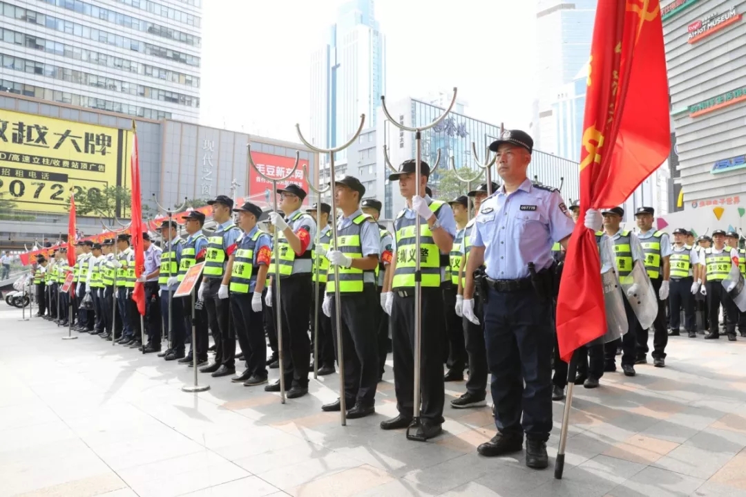 “我自愿加入深圳義警,在黨委政府領導下,公安機關指導下,積極開展內保外巡,加強鄰里守望,認真做好‘一禁四防’,承擔社會責任,維護轄區(qū)秩序,為共建共治共享平安社區(qū)貢獻力量?!?月12日上午,鏗鏘有力的宣誓聲在深圳市福田區(qū)華強酒店廣場響起。500名義警代表身穿印有“華強北義警”字樣的反光背心,整齊列隊,鄭重地表明為百姓守護平安的決心和信心。