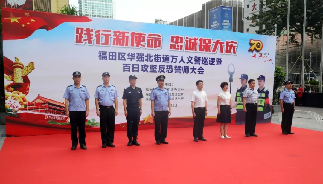 據了解,為全面推進群防群治建設,夯實基層基礎工作,拓寬群防群治領域,提升群防群治效能,筑牢社會治安防控體系,12日上午9時30分,深圳市福田區(qū)華強北街道萬人義警巡邏暨百日攻堅反恐誓師大會在華強酒店廣場舉行,華強北街道辦黨工委書記陳曉中,福田公安分局副局長譚慶彬,華強北街道副書記楊華蘭,福田公安分局治安科科長左樂,華強北派出所副所長張瓊漫、黃強,通心嶺派出所副所長劉景波等相關部門負責人參加儀式并發(fā)表講話。本次大會的舉行,意味著福田義警隊伍再添中堅力量。