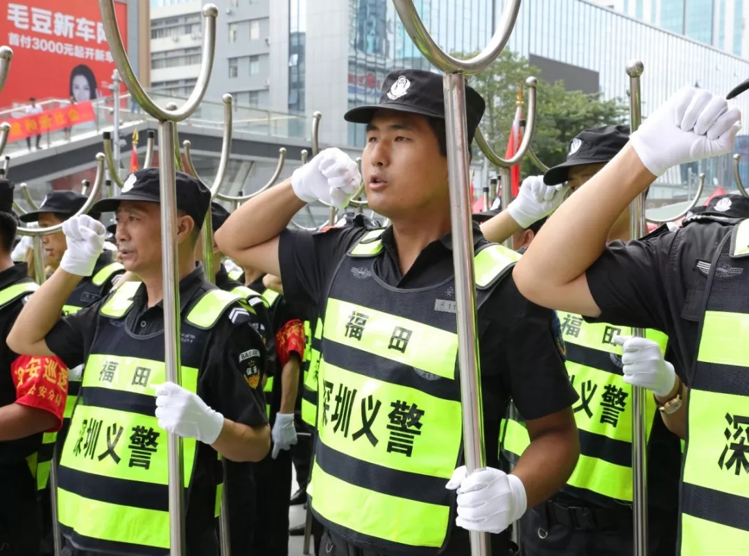 “我自愿加入深圳義警,在黨委政府領(lǐng)導(dǎo)下,公安機(jī)關(guān)指導(dǎo)下,積極開展內(nèi)保外巡,加強(qiáng)鄰里守望,認(rèn)真做好‘一禁四防’,承擔(dān)社會(huì)責(zé)任,維護(hù)轄區(qū)秩序,為共建共治共享平安社區(qū)貢獻(xiàn)力量?!?月12日上午,鏗鏘有力的宣誓聲在深圳市福田區(qū)華強(qiáng)酒店廣場響起。500名義警代表身穿印有“華強(qiáng)北義警”字樣的反光背心,整齊列隊(duì),鄭重地表明為百姓守護(hù)平安的決心和信心。
