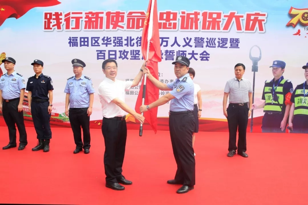 據(jù)了解,為全面推進(jìn)群防群治建設(shè),夯實(shí)基層基礎(chǔ)工作,拓寬群防群治領(lǐng)域,提升群防群治效能,筑牢社會(huì)治安防控體系,12日上午9時(shí)30分,深圳市福田區(qū)華強(qiáng)北街道萬人義警巡邏暨百日攻堅(jiān)反恐誓師大會(huì)在華強(qiáng)酒店廣場舉行,華強(qiáng)北街道辦黨工委書記陳曉中,福田公安分局副局長譚慶彬,華強(qiáng)北街道副書記楊華蘭,福田公安分局治安科科長左樂,華強(qiáng)北派出所副所長張瓊漫、黃強(qiáng),通心嶺派出所副所長劉景波等相關(guān)部門負(fù)責(zé)人參加儀式并發(fā)表講話。本次大會(huì)的舉行,意味著福田義警隊(duì)伍再添中堅(jiān)力量。