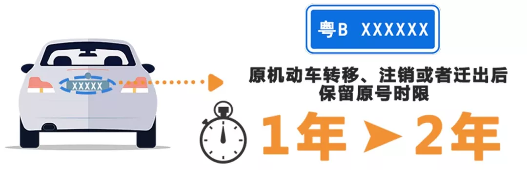 2017年6月20日起,原車(chē)牌號(hào)保留期從6個(gè)月延長(zhǎng)到1年,使用年限從3年減少到1年。