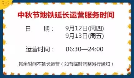 中秋節(jié)地鐵將延長(zhǎng)運(yùn)營(yíng)服務(wù)時(shí)間