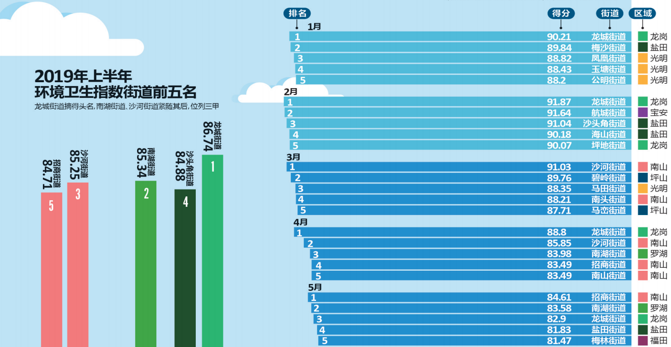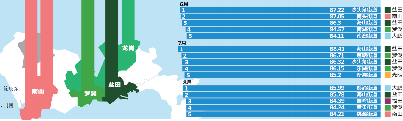 推進(jìn)環(huán)境質(zhì)量邁進(jìn)國(guó)際一流,深圳一直在行動(dòng)。細(xì)心的市民可能早已發(fā)現(xiàn),深圳市城市管理和綜合執(zhí)法局官方網(wǎng)站每個(gè)月都會(huì)發(fā)布“深圳市環(huán)境衛(wèi)生指數(shù)排行榜”,為深圳的環(huán)境衛(wèi)生“打分”。據(jù)了解,深圳市環(huán)境衛(wèi)生指數(shù)測(cè)評(píng)排名已連續(xù)開展了兩年半,有效促進(jìn)了全市環(huán)境衛(wèi)生的提升和轉(zhuǎn)變。今年上半年的“成績(jī)單”顯示,全市各區(qū)(新區(qū))各街道你追我趕,測(cè)評(píng)工作帶動(dòng)社區(qū)環(huán)境改善,環(huán)境衛(wèi)生的整治提升得到了市民的廣泛認(rèn)可和好評(píng)。