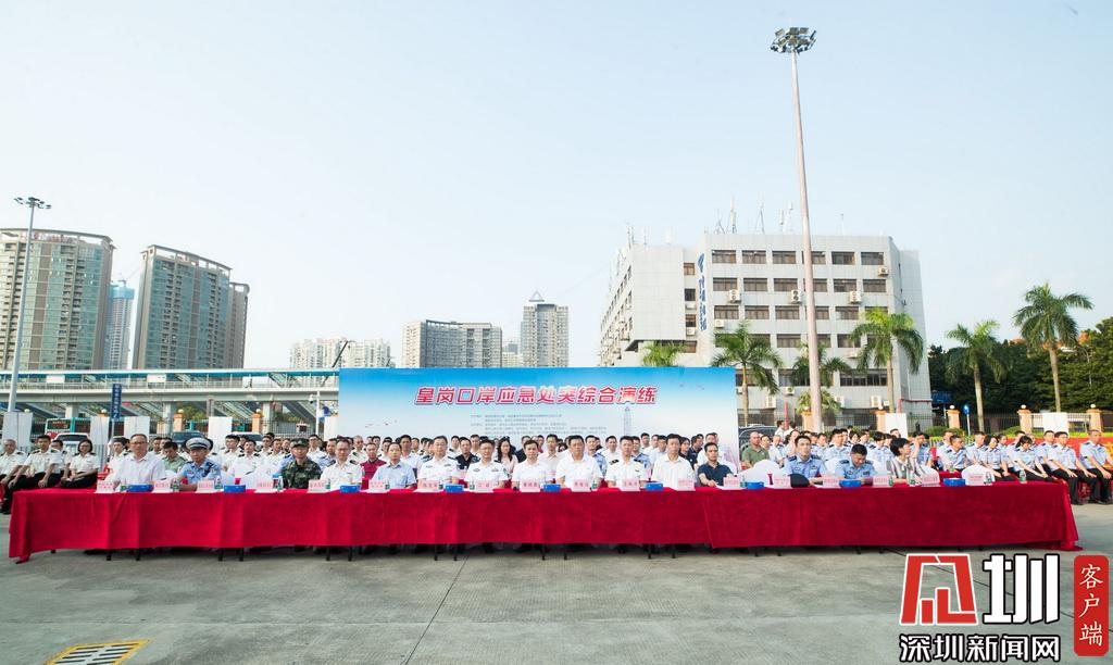 福田區(qū)委副書記黃曉鵬,福田區(qū)委常委、人民武裝部部長李惟海,福田區(qū)人民政府副區(qū)長、市公安局福田分局局長、黨委書記江峰,深圳海關(guān)黨組成員、皇崗海關(guān)關(guān)長王味冰,深圳邊檢總站黨委委員、副總站長、皇崗邊檢站站長陳宏軍,深圳市反恐辦、深圳市口岸辦、以及各參演單位領(lǐng)導(dǎo)現(xiàn)場(chǎng)檢閱觀摩了本場(chǎng)演練。