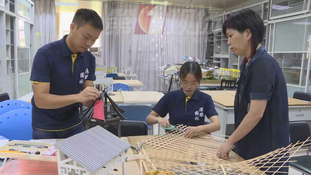 20號(hào)中午,在深圳職業(yè)技術(shù)學(xué)院的培訓(xùn)室,謝老師正在指導(dǎo)學(xué)生制作園林建筑的模型。這門(mén)技術(shù)不僅需要手巧,還要有藝術(shù)上的靈感和創(chuàng)意。