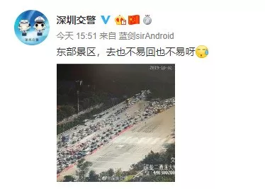去也不易回也不易。這是@深圳交警今天對(duì)東部景區(qū)通行情況的概述。