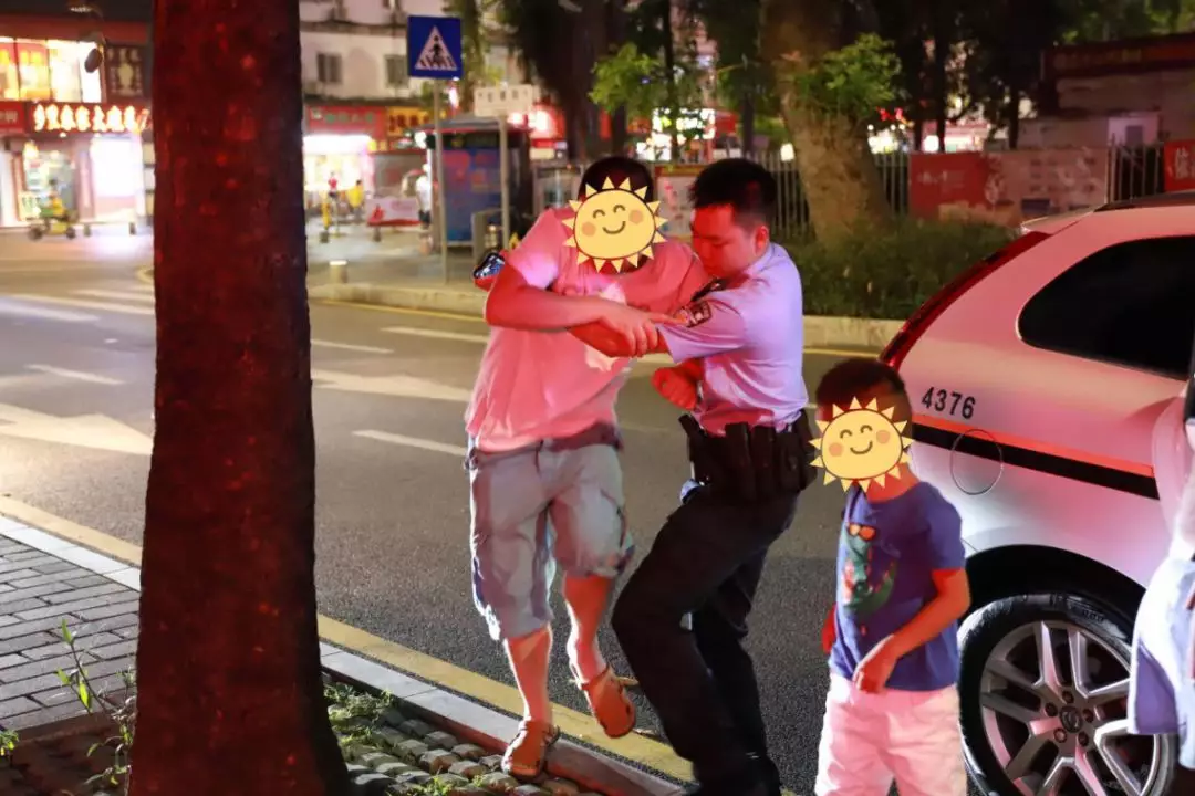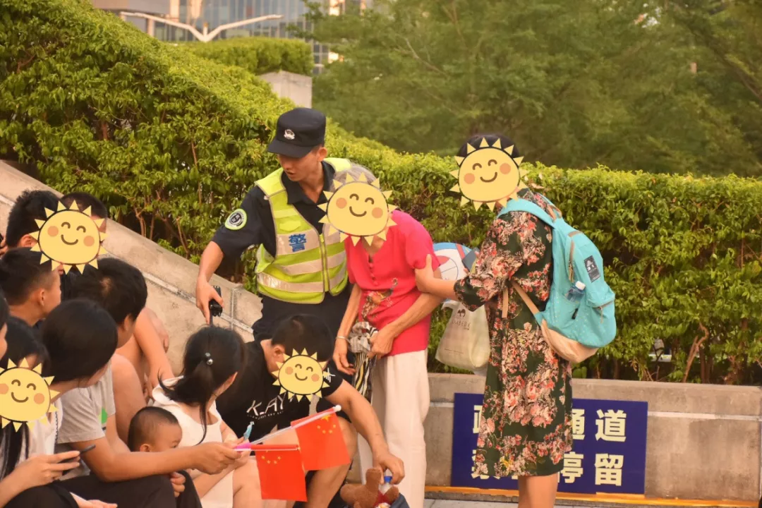 10月2日深圳市公安局福田分局華富派出所民警在燈光秀外圍執(zhí)勤過程中發(fā)現(xiàn)走失小孩,并幫助其找到父親和舅舅。