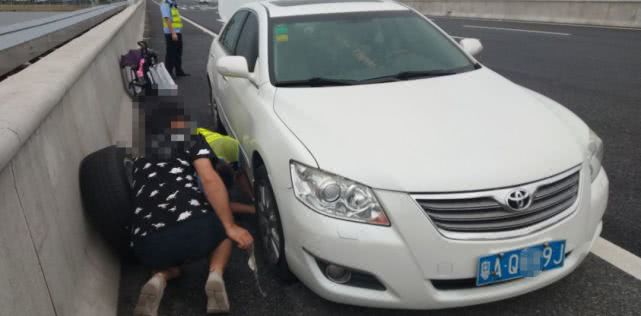 10月5日下午4點(diǎn)多,珠海交警郭警官開著警車在珠三角環(huán)線高速巡邏時(shí),看到有一輛粵AQ××9J號(hào)白色豐田小車??吭趹?yīng)急車道上,打著雙閃。郭警官立即上前詢問(wèn)情況,原來(lái)小車剛上高速?zèng)]多久就爆胎了,司機(jī)深知在高速停下來(lái)很危險(xiǎn),急得團(tuán)團(tuán)轉(zhuǎn),天還下起了小雨。